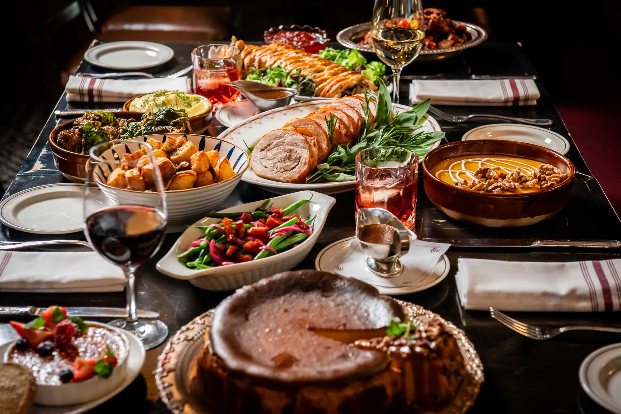 Begin with your choice of butternut squash soup topped with maple-glazed walnuts, crème fraîche and olive oil, or a savoury mushroom en croûte with goat cheese, puff pastry, red pepper jelly and frisée salad. For the pièce de résistance, savour our traditional roast turkey with green beans, lardons, crispy potatoes, brioche stuffing and rich gravy. End on a sweet note with a decadent pumpkin Basque cheesecake topped with salted caramel and toasted pecans.